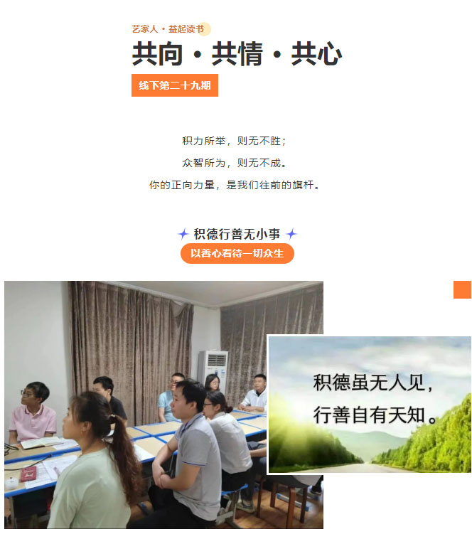 每一場讀書會都是能量傳遞的道場,每一場讀書會都是看見自己、碰撞他人的奇妙瞬間,每一場讀書會更是一念心善最直觀的顯現(xiàn)。感恩每一位書友,感恩藝恩的堅持!